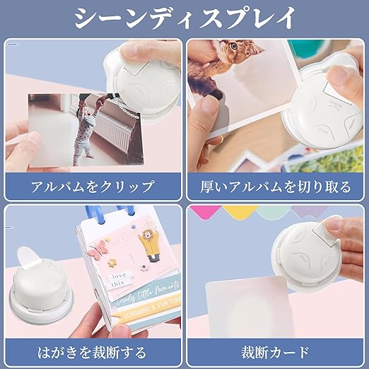 コーナーパンチ 4in1多機能 コーナーカッター かどまるくん【角丸R4mm R7mm R10mm+内側フィレット】角丸パンチ 小型 軽量 持ち運びが簡単 DIYプロジェクト/写真/カード/ラミネートフィルム/紙/pvc 紙/写真/名刺/カード用 (ホワイト)