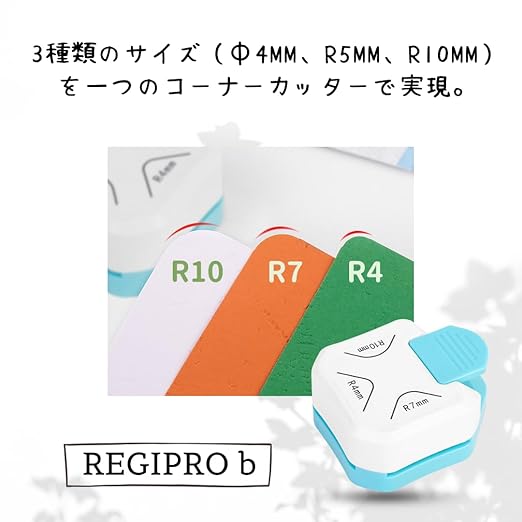 【使いやすさ】3種類のサイズ(Φ4mm、R5mm、R10mm)を一つのコーナーカッターで実現。どなたでも簡単に使える設計で、紙の角を丸くカットすることにより、プロフェッショナルな仕上がりになります。手軽に使えるので、子供のクラフト活動にも最適です。