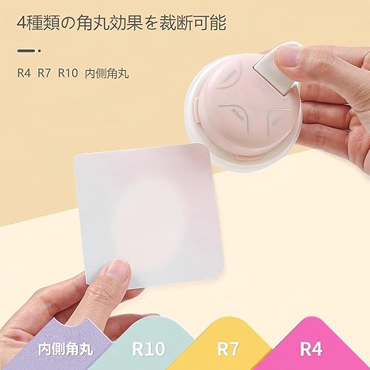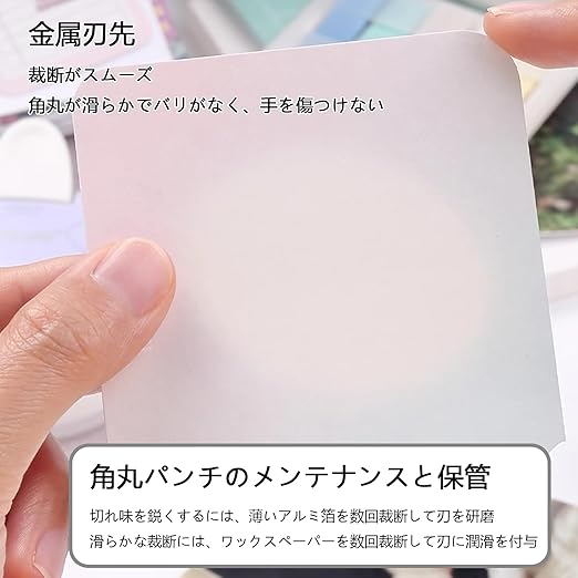【4種類の角丸&角切り可能】1度で4つの異なるサイズの角丸加工が可能。写真やカードの印象を柔らかく演出します。