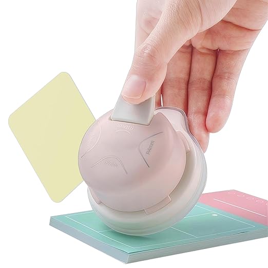 4-in-1 多機能角丸カッタ, 4種類の角丸サイズが切替可能なコンパクト角丸器。金属刃で写真・厚紙・ラミネート紙まで最大0.4mm厚までスムーズに裁断。透明ベースで正確な位置合わせができ、紙粉収集機能付き。レバー式操作で軽い力で美しい角丸が仕上がる業務用品質の文房具です。