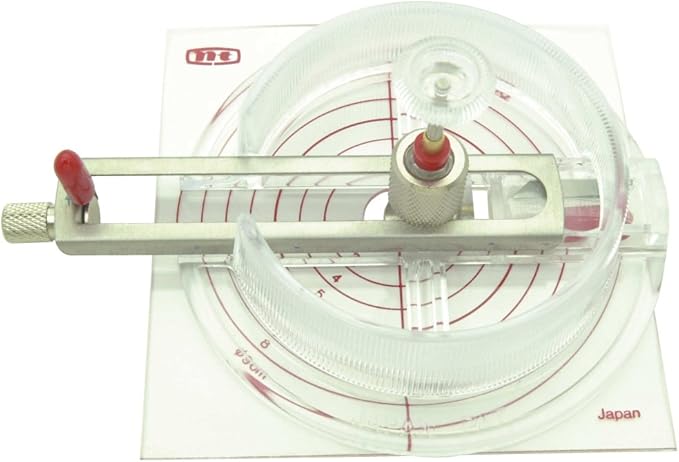 紙などの薄物用円切りカッターです。中心出しに便利なスケルトンボディ、センターゲージも付属しています。紙・フィルム等の薄物を円に切り抜くのに適します。