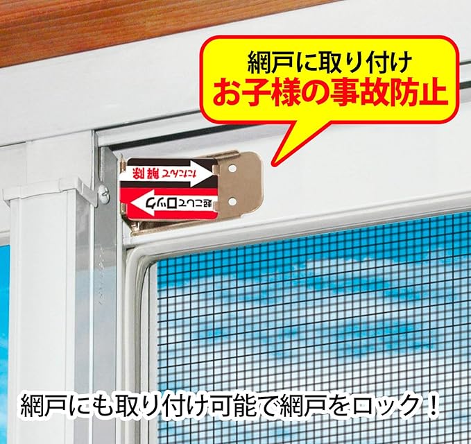 サッシ枠に取り付けて、補助的に窓をロック。 取り付け位置によって開閉位置の調整が可能。 横に2個並べて使えば、「窓を閉じた状態」「少し開いた換気状態」の2通りでロックできます。 サッシのクレセント錠との併用で防犯効果アップ。 もちろん、単品で4箇所の簡易補助錠としても使用できます。 網戸にも取り付けられるので、お子さまの安全対策にも効果的。 素材・材質:ステンレス、粘着テープ 生産国:タイ ●取付可能寸法=クレセント錠を開錠した状態で、外側・内側サッシ枠の間4mm以上の隙間が必要です。