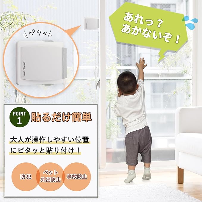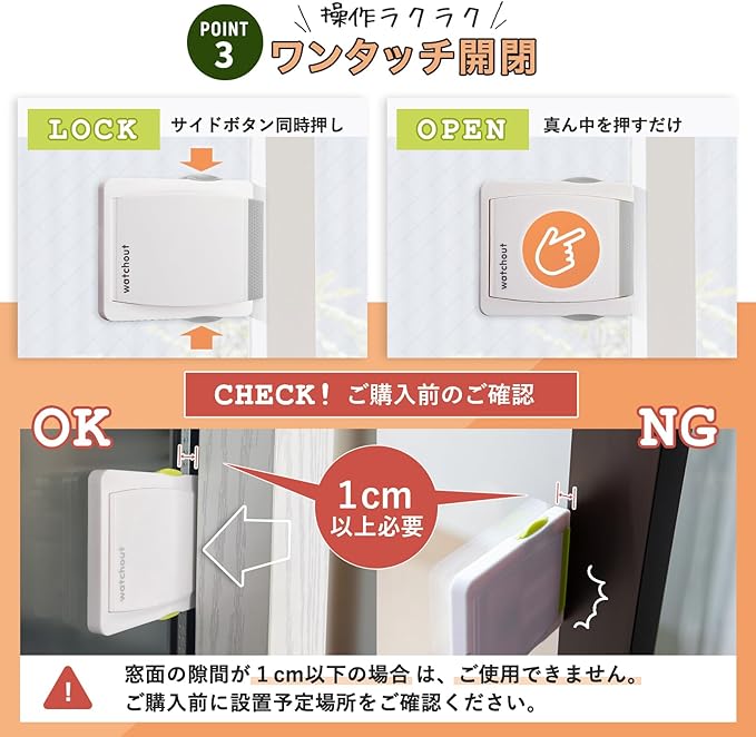 ワンタッチ開閉、しっかり強度、ピタッと貼り付けるだけの簡単操作で窓ぎわを安心空間へ。