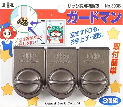 ガードロックサッシ窓用補助錠ガードマン3個組ブロンズNo.393B