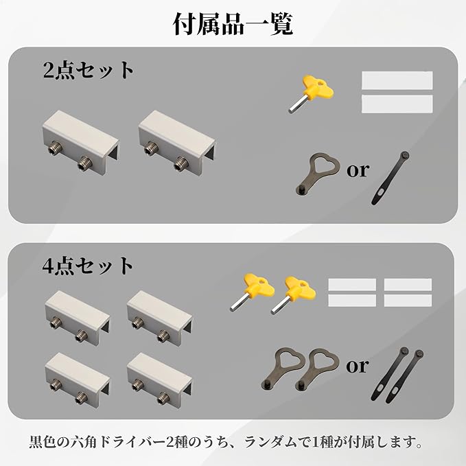 専用工具と2種類の鍵(正面固定の黄色鍵・側面固定の黒色鍵)がセットになっており、穴あけ不要で誰でも簡単に取り付け可能です。賃貸住宅でも穴あけの心配がなく、手軽に設置できることは、特に便利な特徴です。これにより、防犯グッズとしても選ばれる理由となります。