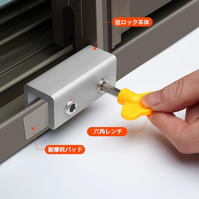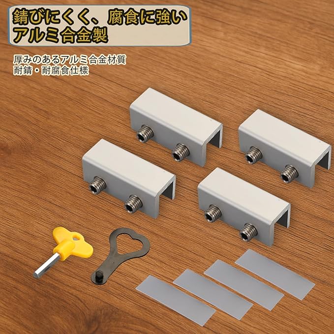 【幅広い適用シーン】家庭内のサッシ窓やベランダドア、引き戸にも対応し、後付け設置が可能。オフィス、宿泊施設、賃貸住宅などでも広く活躍します。頑丈なアルミ合金製で耐久性抜群、錆びにくく長期使用が可能です。