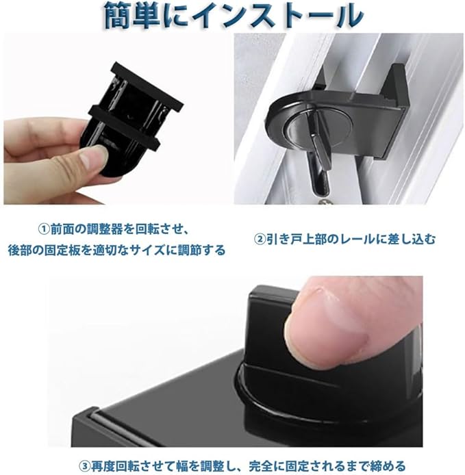 【簡単にインストール】15MM~30MMがインストール可能な範囲。ロックを窓枠の溝に挿入し、つまみを回転させるだけで簡単に固定できます。取り付けが簡単で迅速なだけでなく、一層の安全保護を追加します。