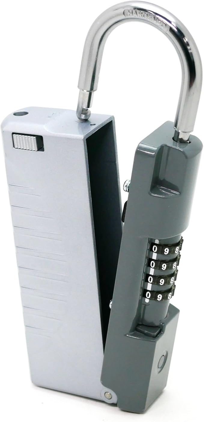 鍵を共有! 収納スペース付き南京錠! カギ、伝言メモ等色々大切な小物の受け渡しに! 賃貸住宅、事務所・デイサービス等の鍵管理に! 収納口が広く入れやすい! ダイヤルは可変式で自分で設定可! 番号は10000通り! カギ紛失防止のためのフックを収納部内側に設置 施錠・解錠はダイヤル式でキーは不要! 倉庫等で使用されるロングキーや自動車の大型キーも収納可能! ご注意(免責)>必ずお読みください ●ヒモ・ナスカン等は付属せされておりません。