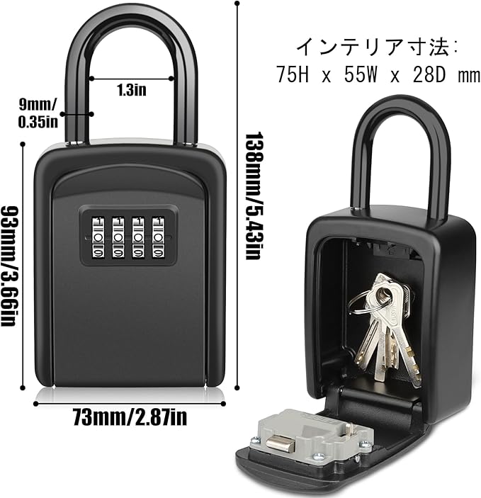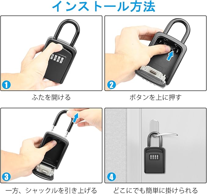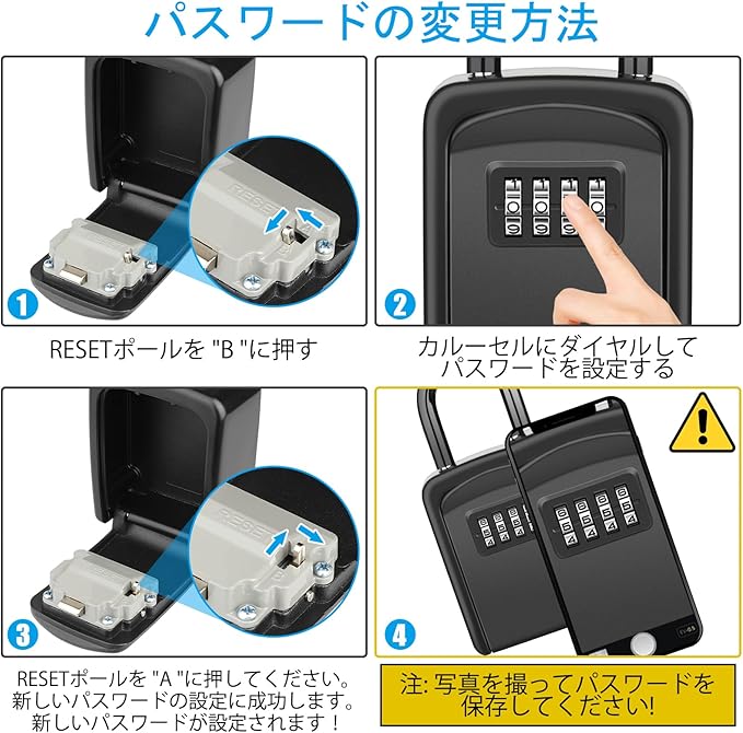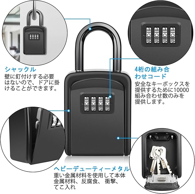 【4桁の組み合わせダイヤル】最大10,000通りの組み合わせが可能です。付属のヒンジ付きカバーにより、片手での操作が可能です。明確な指示により、いつでもアクセスコードをリセットできます。パスワードがリセットされたら、写真を撮るのが最善であり、そうしないと再び開く方法がなくなることに注意してください。