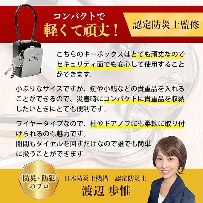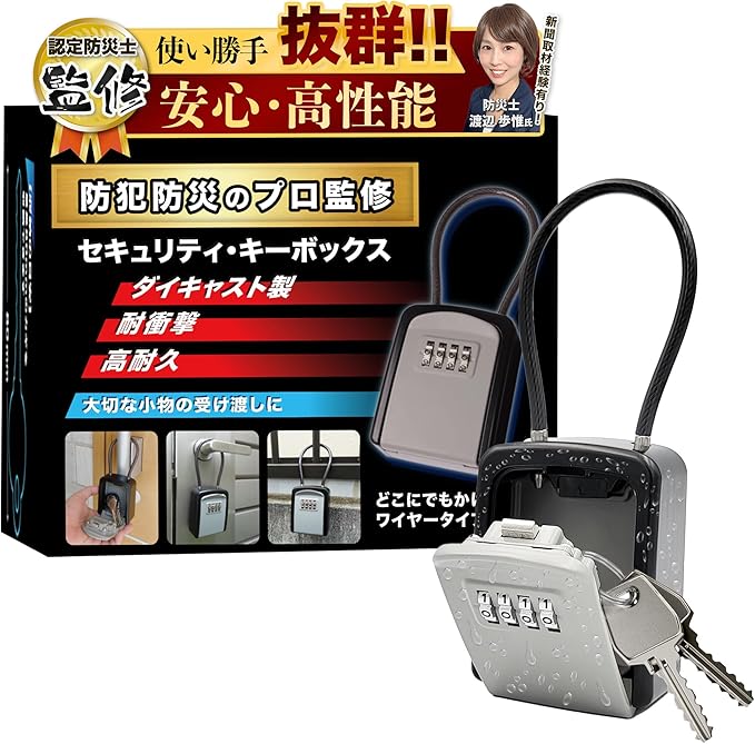 【防災士監修】 セキュリティキーボックス ワイヤー 4桁 ダイヤル式 鍵 管理 収納 屋外 屋内 兼用 防犯 盗難防止 南京錠 EdisonBrain