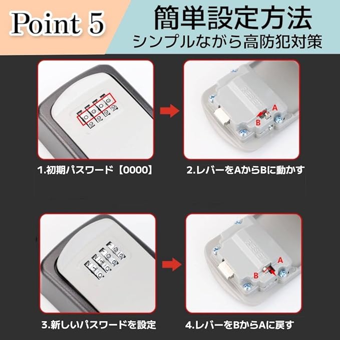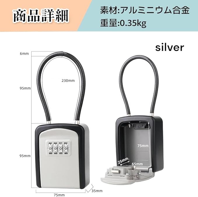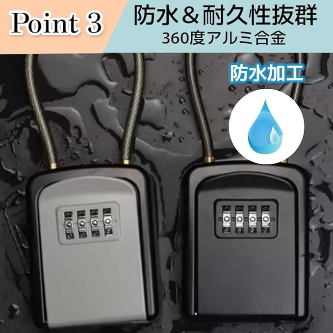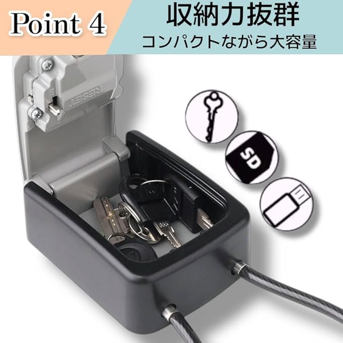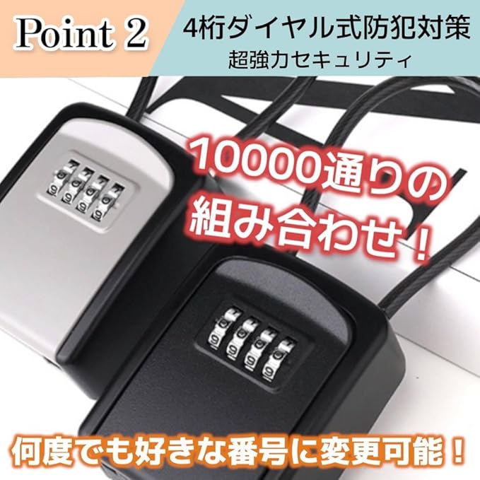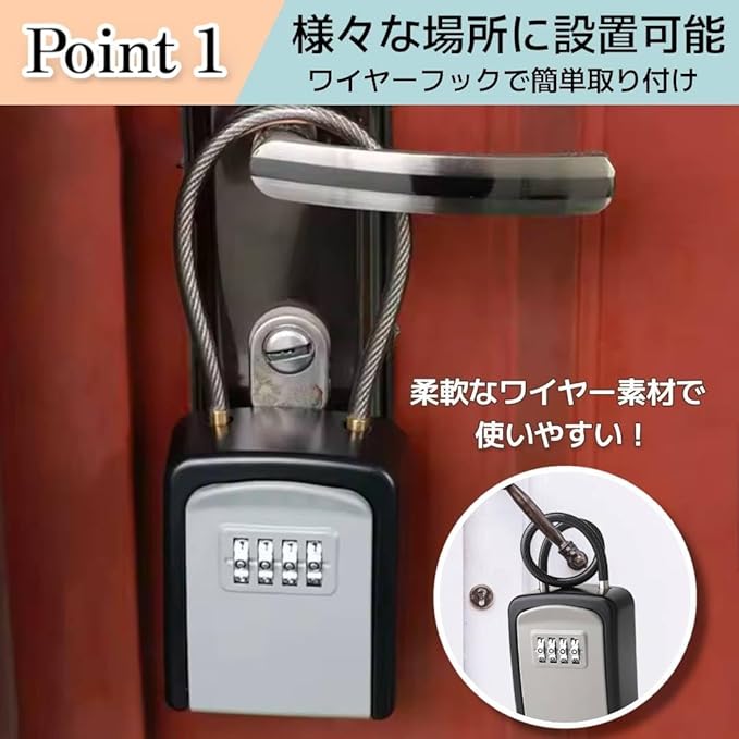 キーボックス ダイヤル式 小型 屋外 ワイヤー式 セキュリティボックス 頑丈設計 key box 日本語説明書付き (ブラック)