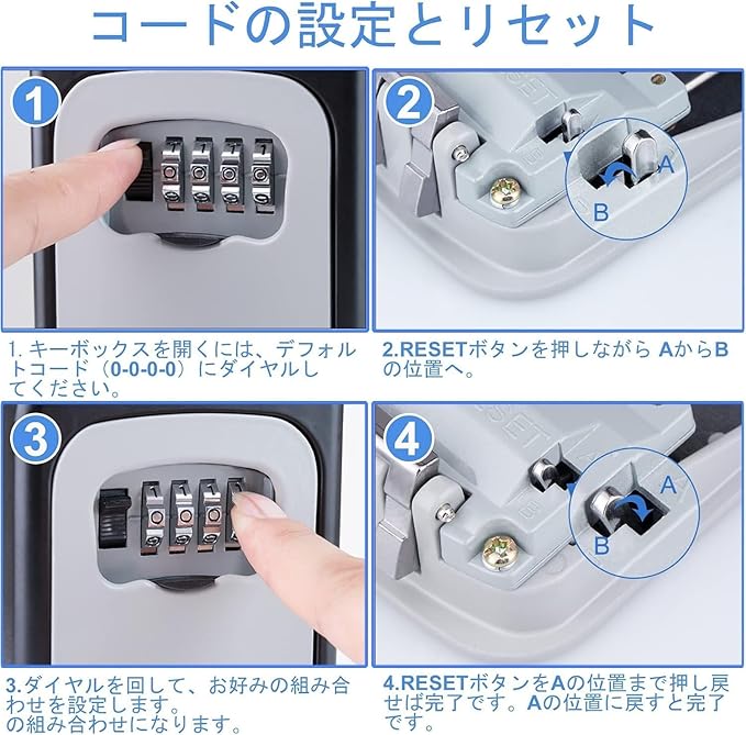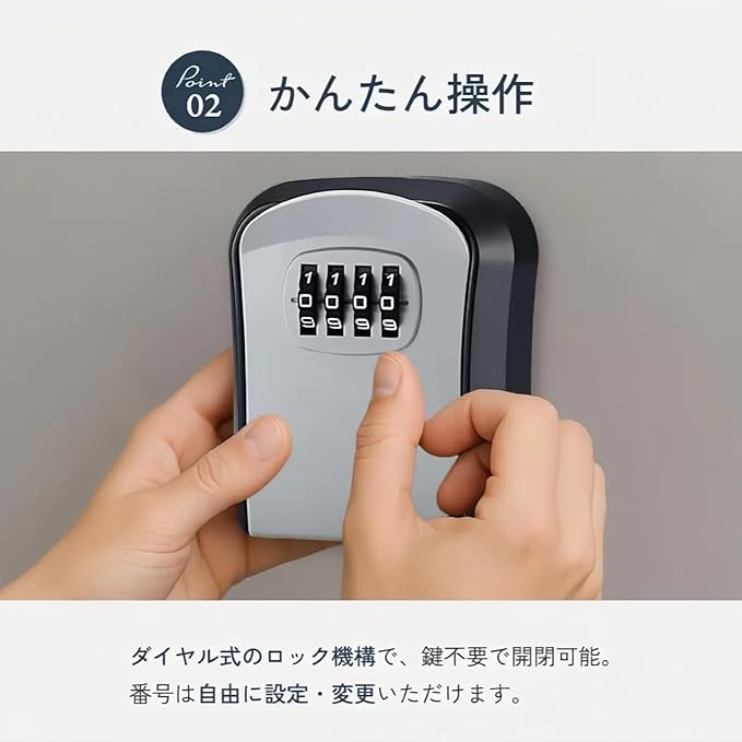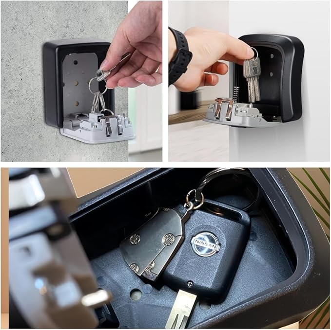 4桁ダイヤル式のセキュリティキーボックス。壁掛け可能で、家庭やオフィス、屋外での鍵管理に最適です。頑丈な構造と盗難防止設計により、大切な鍵を安全に保管できます。コンパクトながら十分な収納スペースを備え、複数の鍵を収納可能。防水・耐久性に優れた素材を使用し、屋外でも安心して使用できます。設置が簡単で、玄関・ガレージ・物置・貸別荘・シェアハウスなど、幅広い用途に対応。鍵の受け渡しや管理をスムーズに行える便利なアイテムです。