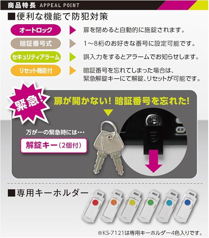 付属品:専用キーホルダー、取り付けネジ、緊急解除キー