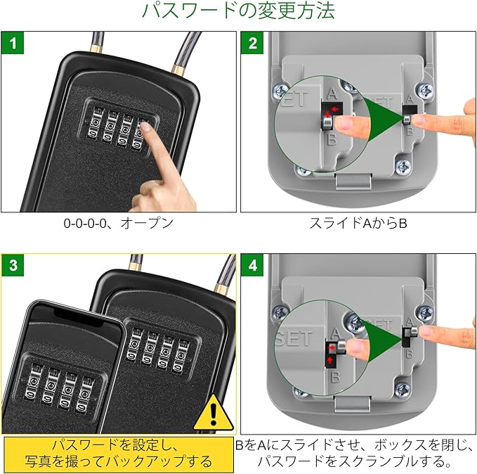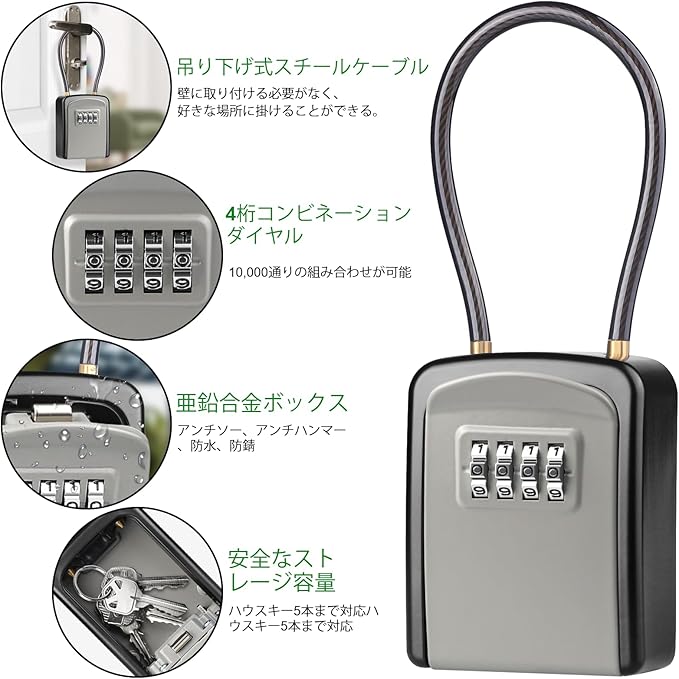 高品質 : このキー金庫の金属ボディは耐候性と耐摩耗性に優れた亜鉛合金製で、耐候性があり、錆びにくく、ハンマーで叩いたり、欠けたり、のこぎりで切ったりすることにも耐えられます