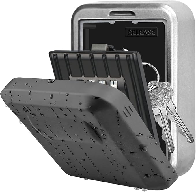 BenRich キーボックス 4桁ダイヤル式 壁掛け 防水カバー付き セキュリティ 屋外 使用簡単 鍵共有 暗証番号 鍵収納 防犯 玄関 倉庫 鍵ボックス 日本語説明書付き
