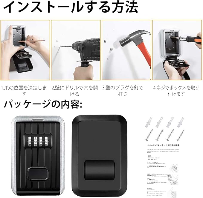 使用簡単、便利なセキュリティキーボックス:暗証番号機能を採用し、4桁の暗証番号を自由に設定でき、お好きな番号に変更ができます。10000通のパスワードを設置でき、暗証番号が知らないと開けません。鍵を保護するためのセキュリティキーボックス。