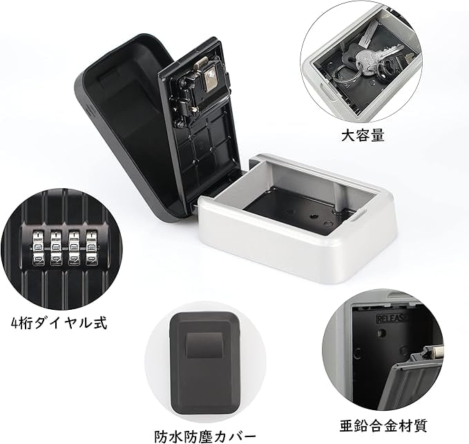 大容量、幅広い用途:セキュリティキーボックス長さ:約124mm幅:約83mm高さ:約41.5mm、①屋外に設置して使用できますので、家族とカギを共有使用できるので、とても便利です。②十分なスペがあって、小物などの保管箱として使用することができます。③カギが一本しかない会社、工場、倉庫や事務所などの共有鍵管理に最適です。