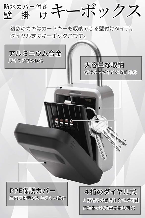 キーボックス本体は強度の高いアルミニウム合金で作られているため、耐久性も抜群です。万が一、何らかの衝撃が加わっても簡単に壊れる心配もございません。