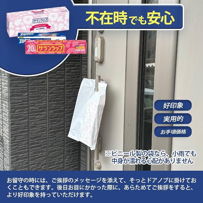 便利な不在時対応: 白無地ビニール袋付きで、ドアノブに掛けて配布可能。雨でも中身が濡れる心配なし