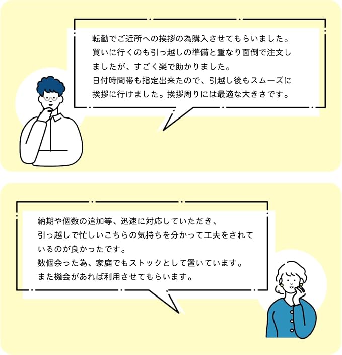 贈り物に最適: 引越しのご挨拶や新居祝い、ご近所へのお礼など、様々な場面で活用できる上品なデザインの粗品