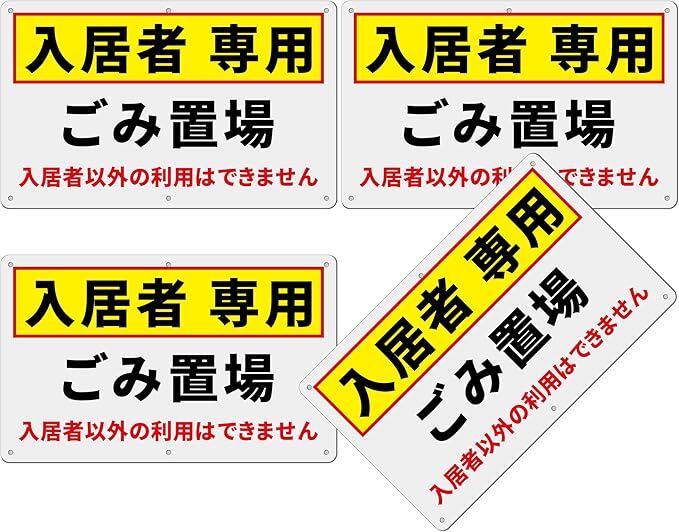 4枚 セット 入居者ゴミ置き場用看板「入居者専用 ゴミ置場」ゴミ捨て禁止看板 340 210ミリ 白塩ビ樹脂板 プレート看板 高視認性 防水 屋外対応 PVC (D-b2, (小) (340 210mm) 4ピース)