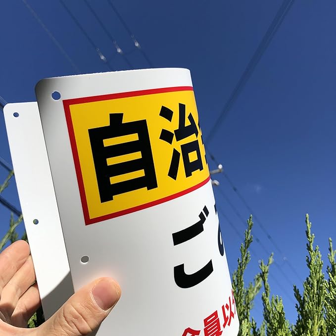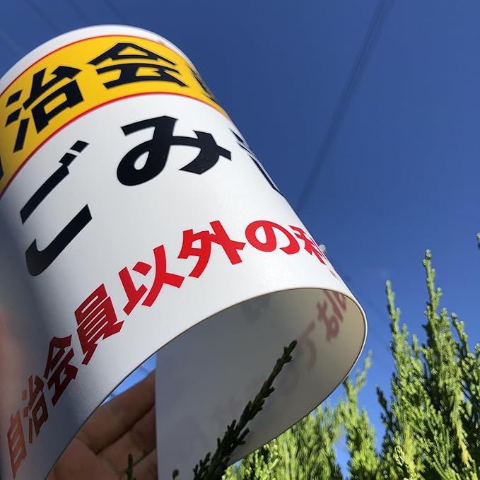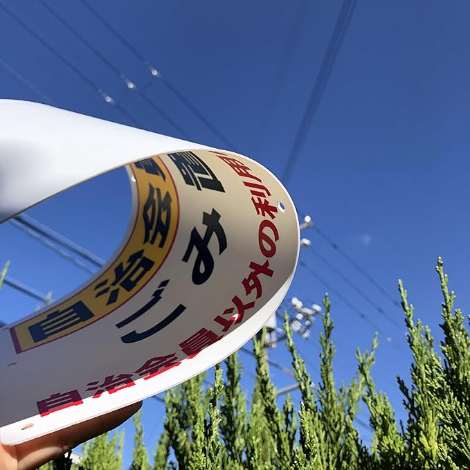 素材:PP(ポリプロピレン)樹脂板 (屋外対応) で曲げにも強く、電柱のような円柱の曲面にも取り付けが可能です。 防水仕様、耐候性に優れたポリプロピレン製の看板です。