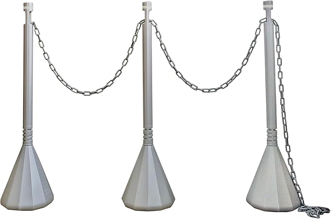 スマートチェーンポール 駐車場 ホワイトシルバー 3本組セット(チェーン付) 高さ82cm ミツギロン SF-92-WS チェーンスタンド
