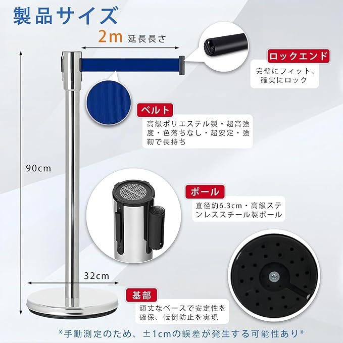 【赤ベルトで視認性UP、安全確保】:鮮やかなレッドベルトが視覚的なガイドとして効果的。歩行者や来場者に自然と注意を促し、事故防止やスムーズな誘導を実現します。暗い場所でも認識しやすく、安全性と効率性を高めます。