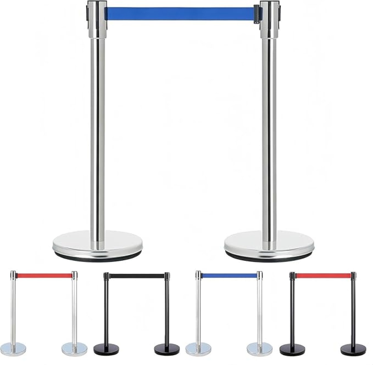 ベルトパーテーション 4本セット 4方向連結 移動が便利です 自動巻取りポールパーテーション シルバーポールxレッドベルトベルト長さ約2m 支柱 ベルトパーテーション 行列の整理や誘導に大活躍 店舗の列整理、空港の通路、イベントの入口 (青)