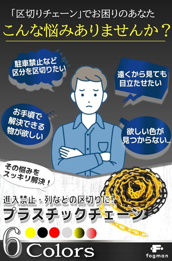 fogman チェーン プラスチック 鎖 駐車場 三角コーン 進入禁止 パーテーション 軽量 5m (ブラック)