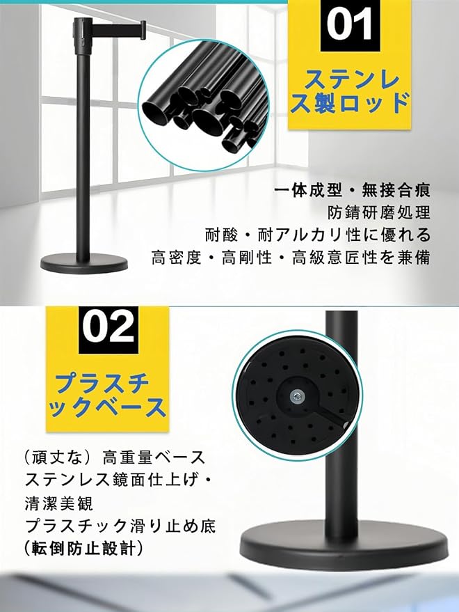 なぜ当社のモダンな仕切りベルトを選ぶのか?ブラック調の金属素材とブラックベルトの組み合わせが、どんな空間にもモダンで洗練された雰囲気を演出。オフィスやイベント会場、商業施設など、あらゆるシーンで高級感と機能性を両立します。スタイリッシュな見た目で、誘導や仕切りをスムーズに行えます。主な特徴:モダンなデザインで空間をスタイリッシュに - ブラック調の金属素材とブラックベルトの組み合わせが洗練された雰囲気を創出