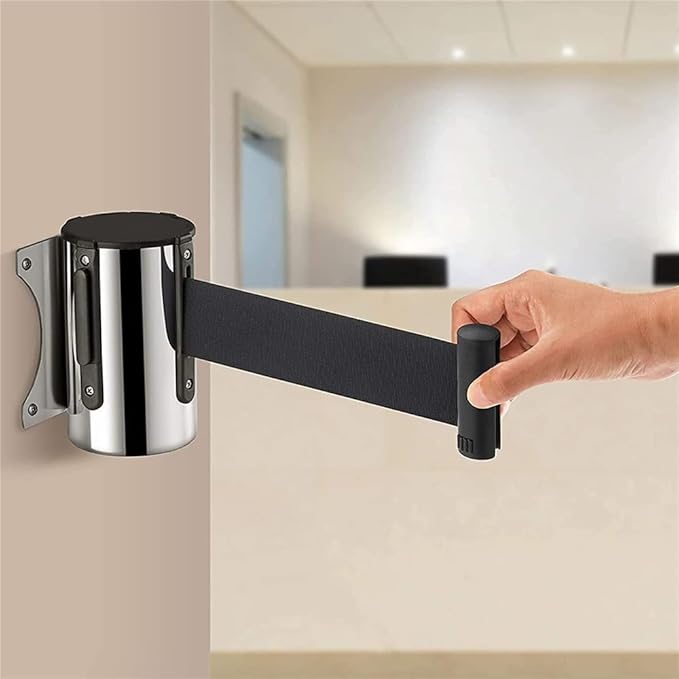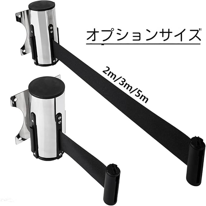 壁掛式ベルトパーテーション 引き込み式伸縮障壁ベルト 2/3/5M、屋内外兼用 群集管理警告バリア 博物館・工場・映画館向け 不銹鋼仕上げ (3M)