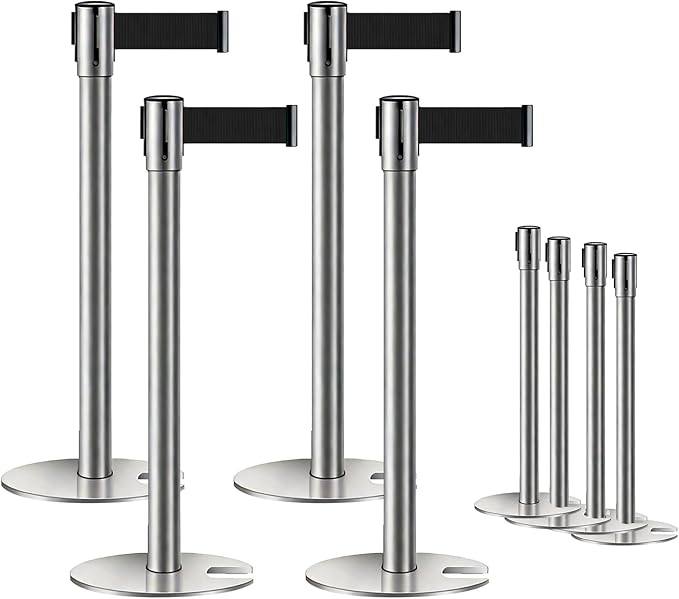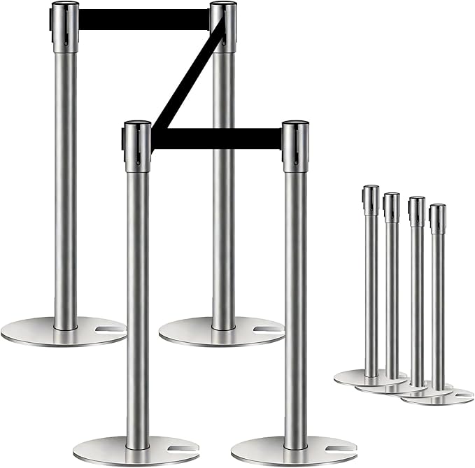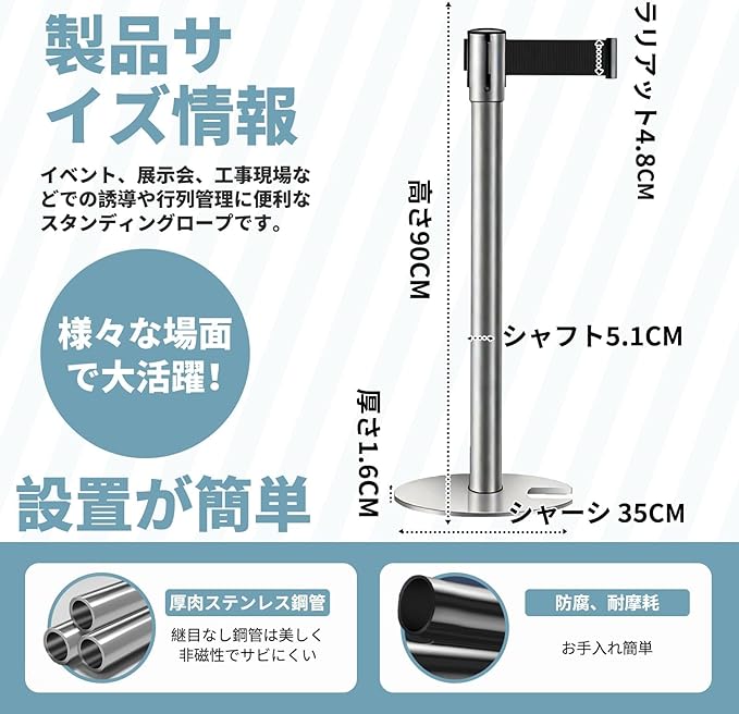 【モダンなデザインで空間をスタイリッシュに】:シルバー調の金属素材とブラックベルトの組み合わせが、どんな空間にもモダンで洗練された雰囲気を演出。オフィスやイベント会場、商業施設など、あらゆるシーンで高級感と機能性を両立します。スタイリッシュな見た目で、誘導や仕切りをスムーズに行えます。