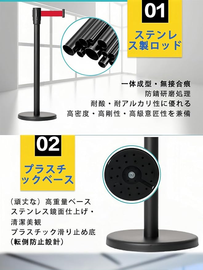 なぜ当社のモダンな仕切りベルトを選ぶのか?ブラック調の金属素材とブラックベルトの組み合わせが、どんな空間にもモダンで洗練された雰囲気を演出。オフィスやイベント会場、商業施設など、あらゆるシーンで高級感と機能性を両立します。スタイリッシュな見た目で、誘導や仕切りをスムーズに行えます。主な特徴:モダンなデザインで空間をスタイリッシュに - ブラック調の金属素材とブラックベルトの組み合わせが洗練された雰囲気を創出