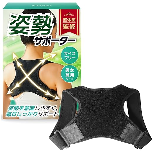 【10秒で簡単装着、服の下でも目立たない】 姿勢サポート 猫背ベルト 姿勢ベルト 【男女兼用・Mサイズ】BURANOUS