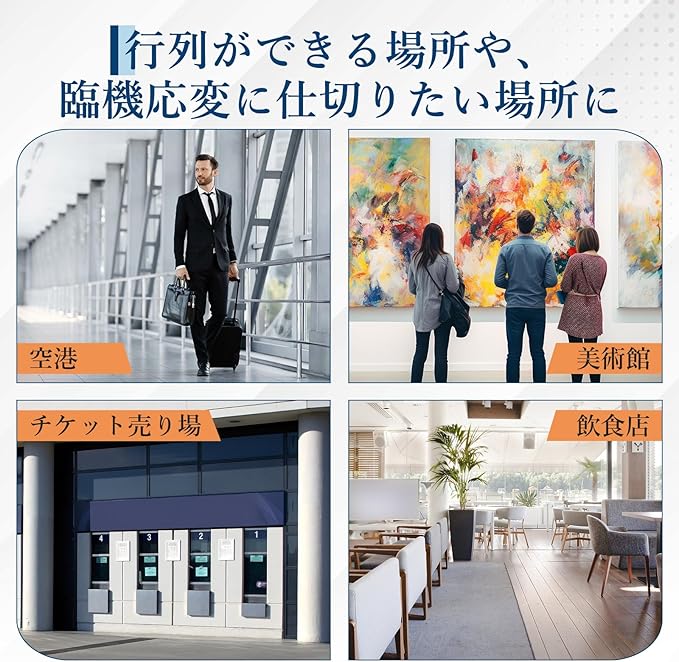 【様々な場面に適用】ロープ型の構造のため、ポールの配置を調整することで自由なレイアウトが可能であり、屋内の店舗やイベント会場はもちろん、屋外のガーデンパーティーや展示会など、様々な場所で活用することができます。