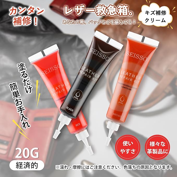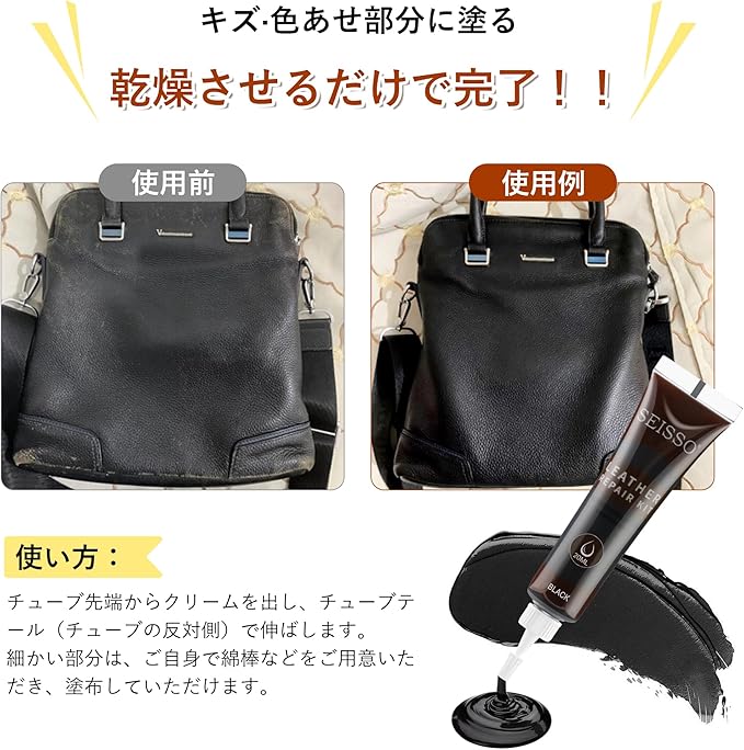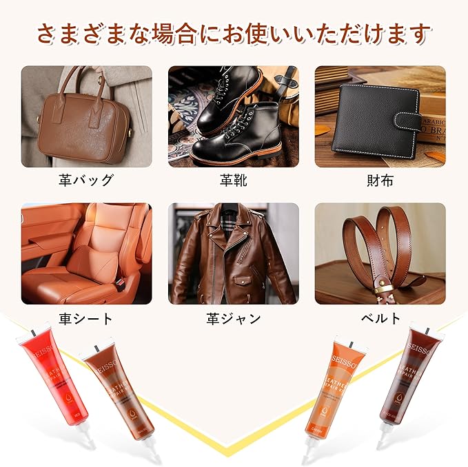 【適用範囲】▲ソファ、車やボートのシート、自転車のシート、オフィスチェア、ベルト、バッグ、財布、靴などの傷、ひび割れ、傷跡、擦り傷、ペットの爪跡、傷・色あせなどの修復が可能です。▲古くなった本革、模造品、アクセサリーなどをリフレッシュできます!