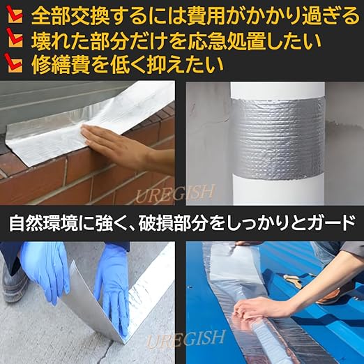 ✅先ずは補修箇所を確認しましょう。✅【サイズ】:幅5cm、幅10cm、幅15cm x 長さ5mxブチル厚1.5mm(特厚)✅UREGISH(商標:第6199881号) 商品に不具合がございましたら使用後、使い掛けであっても、ご購入後30日以内は【注文履歴】より返品できます。