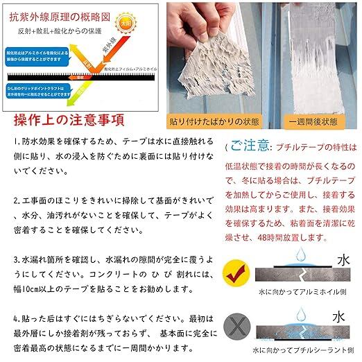 【高純度 防水 耐熱原料】水漏れ専用補修テープ。純粋なブチルゴムでできており、安全で環境に優しく、無毒、無刺激臭。不純な材料や粗悪な材料を使うよりも伸び率が高く、長持ちします。【HOT保証】アルミブチルテープ 防水は何にか不具合・初期不良があれば製品保証を行いますのでご安心してお買い求めください。
