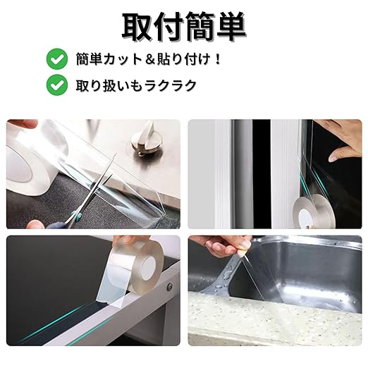 (多用途で信頼性抜群)この防水テープは、キッチン、シンク、トイレ、洗面所、浴槽などの水回りに最適です。カビや汚れを強力にブロックし、表面が汚れても簡単に洗い落とせます。アクリル素材で強い粘着力を持ち、防水性、防湿性、防カビ性、耐油性に優れ、長期間使用できる高耐久性を誇ります。家庭やオフィス、工事現場など多様なシーンで大活躍します。