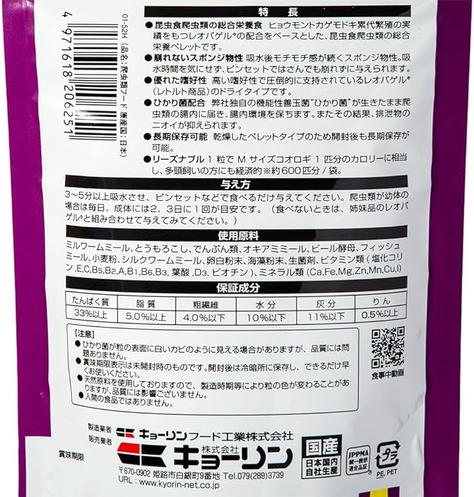 商品用途・使用方法 昆虫色爬虫類の総合栄養食