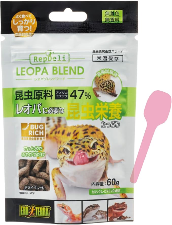 「セット」 ジェックス レオパブレンド フード トカゲ ヤモリ 爬虫類 餌 60g と 餌やりスプーン