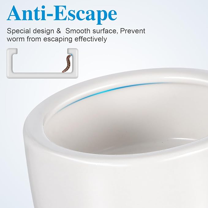【逃げ出しにくい滑らかな内壁】 内側はツルツルとした仕上げになっており、ミルワームやデュビアなどの生き餌(活き餌)が壁を登って脱走するのを防ぐ効果が期待できます(※餌のサイズや脚力によります)。
