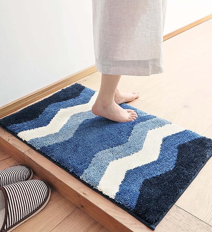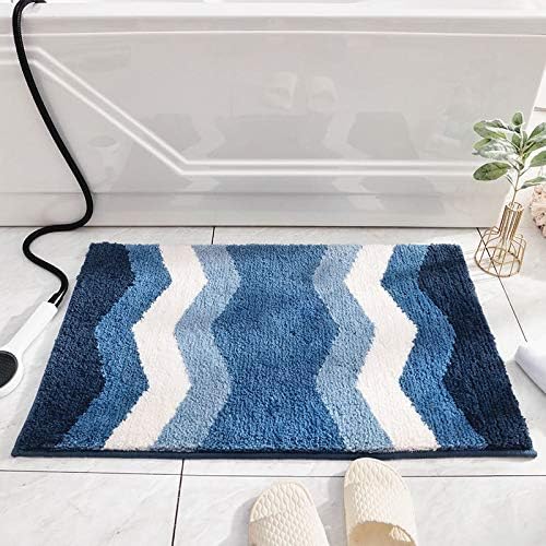 Joy-yong玄関マット室内おしゃれ 風水 北欧 バスマット 洗面所 マット 浴室足ふきマットふわふわ 柔らかい 速乾 吸水 滑り止め 洗える 洗濯機 丸洗い ラグマット業務用 家庭用 (60cm*40cm, 水の波紋は運を助けます-青)