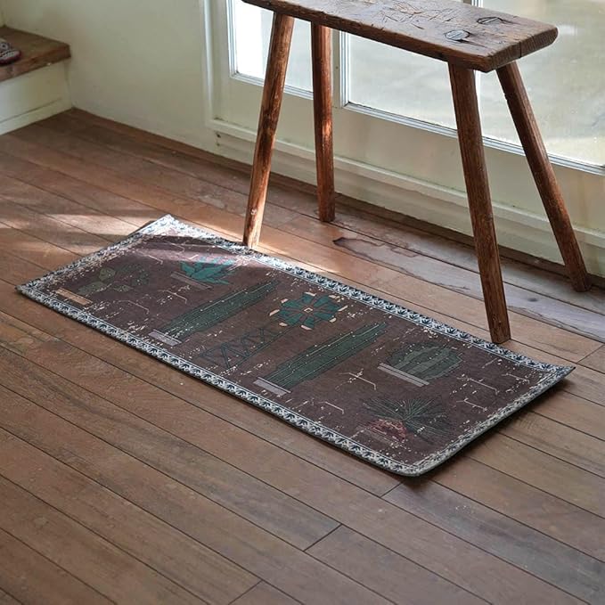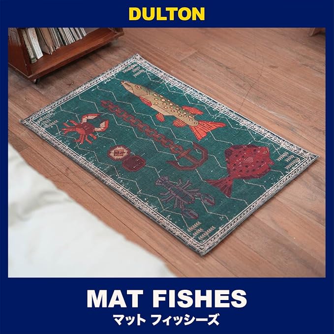 DULTONのプロダクト"FISHIES"をモチーフにデザインに落とし込んだマット。くすんだ色合いに、かすれた柄・模様がビンテージの風合いを感じさせます。裏面には滑り止めが付いており、洗濯機で丸洗いも可能。使い勝手も優秀です。落ち着いた色合いなので、空間に取り入れやすく、個性的な柄がアクセントに。程よくゆるいデザインがクセになりそうです。