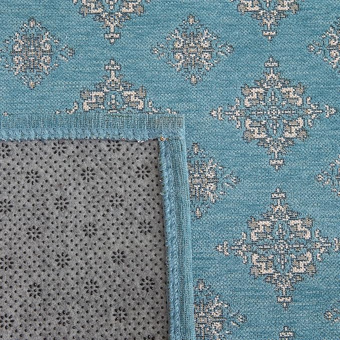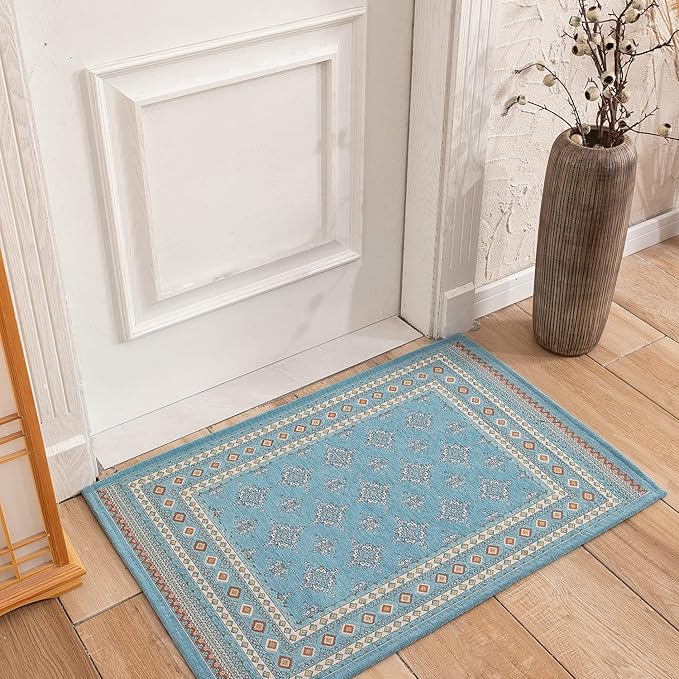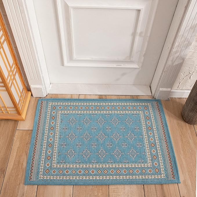 カーペット 玄関マット 屋外 屋内 北欧 洗える おしゃれ ドアマット 泥落とし ゴブラン織り すべり止め 床暖房対応 50 * 80cm 業務用 家庭用 オフィス用 ブルー