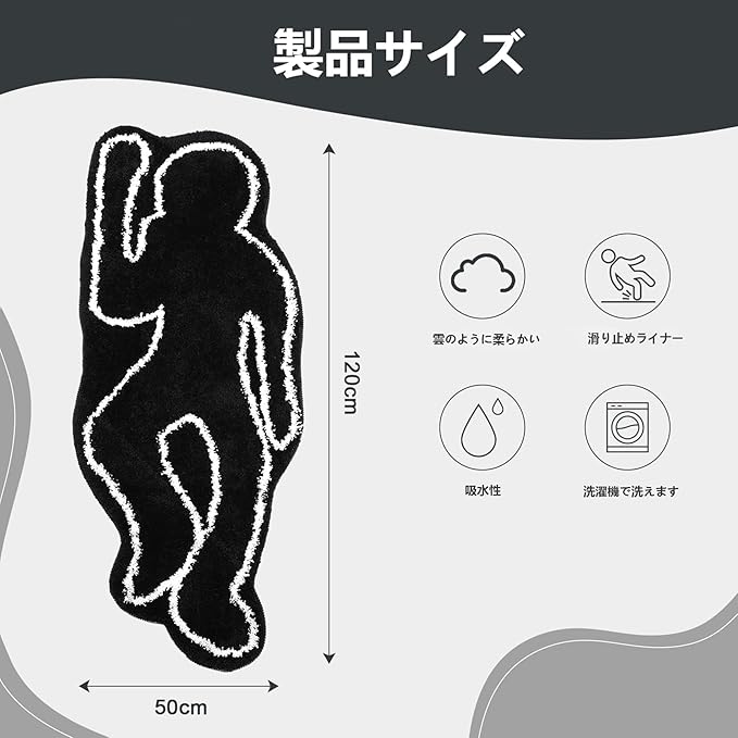 面白い リトル マン 形状 バスマット 玄関 トイレ キッチン お風呂 室内 屋外 マット おしゃれ ふわふわ 滑り止め 防音 速乾 吸水 洗える ラグマット(50*120)
