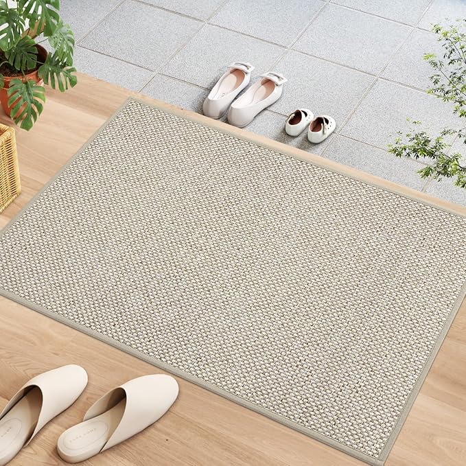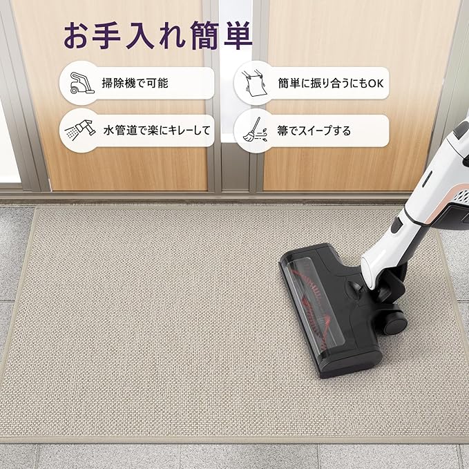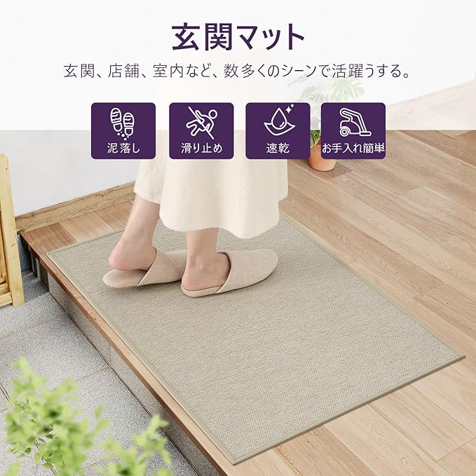DEXI 玄関マット 室内 シンプル ナチュラル 無地 泥落とし 滑り止め お手入れ簡単 水洗い可能 防カビ 防臭 湿気対策 吸水 おしゃれ 44x76cm ベージュ