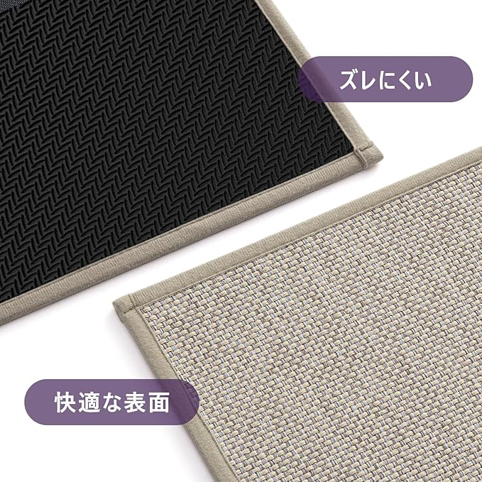 【安心して使える滑り止め仕様】裏面にはズレにくい滑り止め加工を施し、フローリングにやさしくフィット。人の出入りが多い玄関でもマットが動きにくく、安定感のある使い心地です。お子様やご年配の方がいるご家庭でも、安心してお使いいただけます