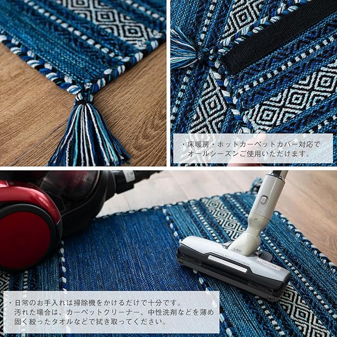 【備考】床暖房の上敷き、ホットカーペットカバー対応。 / 商品は[丸巻き]または、[折り畳み]の状態でお届けいたします。 / ※こちらの画像は、商品サイズ 60x90 cm を使用しております。【備考】手洗い可(洗濯機、乾燥機は不可) / 折りたたみ可 / 床暖房の上敷き、ホットカーペットカバー対応 /風合いにこだわる為、糸をミックスしてヴィンテージ感が出るようにしています。一点一点手作業で作る為に織りムラや歪みなどを感じることがあると思いますが、これもハンドメイドの味わいですので、ご理解くださいませ。/手洗い時、縮んだり色落ちしますので、漂白剤及び漂白剤入りの洗剤のご使用は避け、他の物と分けて単独でお洗いください。/完全に乾いた状態でご使用ください。/インド綿製品は色落ちしやすい特性があります。摩擦や水濡れ、汗によって色が移る可能性がございます。/インド綿の特性上、織りムラ、節、ネップ等ございますのでご了承の上、ご購入ください。